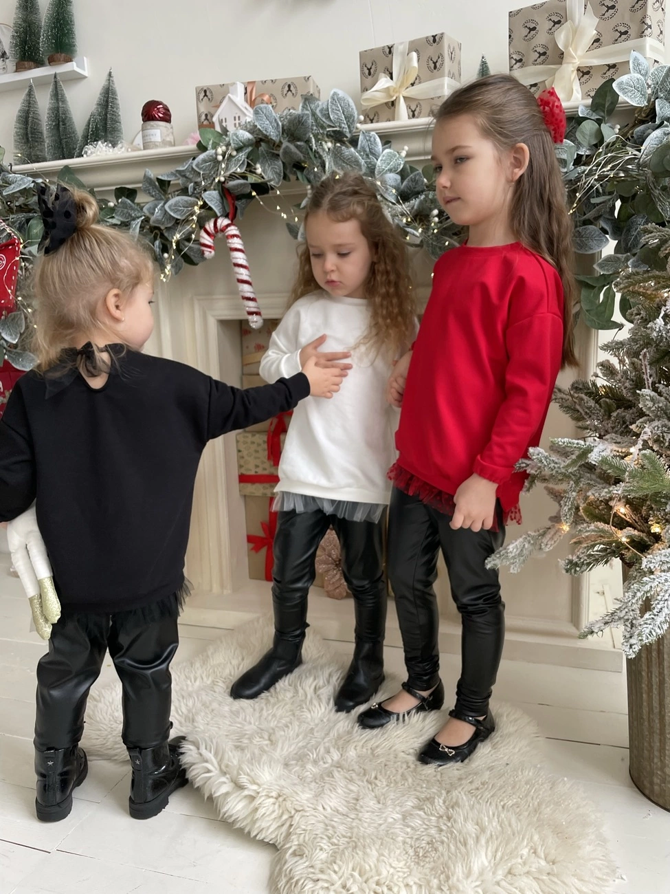 Свитшок прекрасно сочетается с кожаными лосинами и пышными юбочками из нашей колекции.