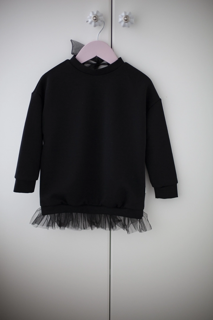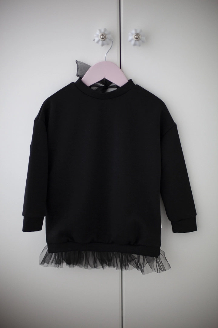 Нарядный свитшот для девочки,выполнен из полированной трехнитки, на шее завязывается на красивый бантик из мягкой сеточки, внизу кофточки красивая сборочка из сеточки в цвет изделия.