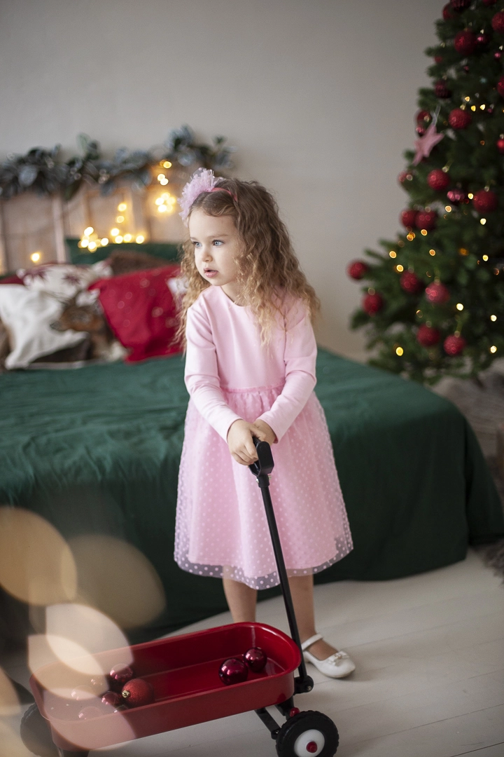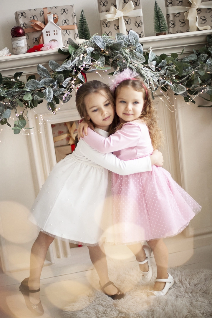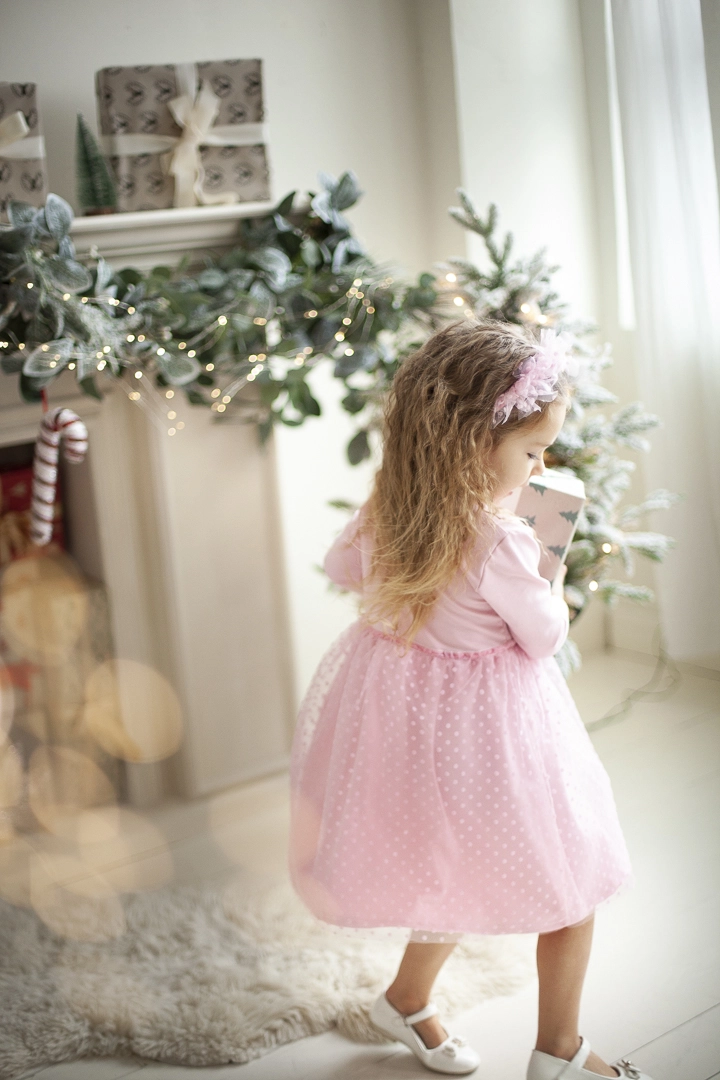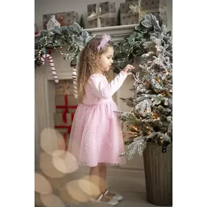 Нежное платье на хлопковой подкладке, с длинным рукавом. Сзади змеечка для удоства. В комплект можно дозаказать обручи и заколки с бантиками в цвет платью.