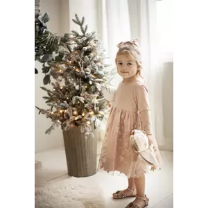 Нежное платье на хлопковой подкладке, с длинным рукавом. Сзади змеечка для удоства. В комплект можно дозаказать обручи и заколки с бантиками в цвет платью.