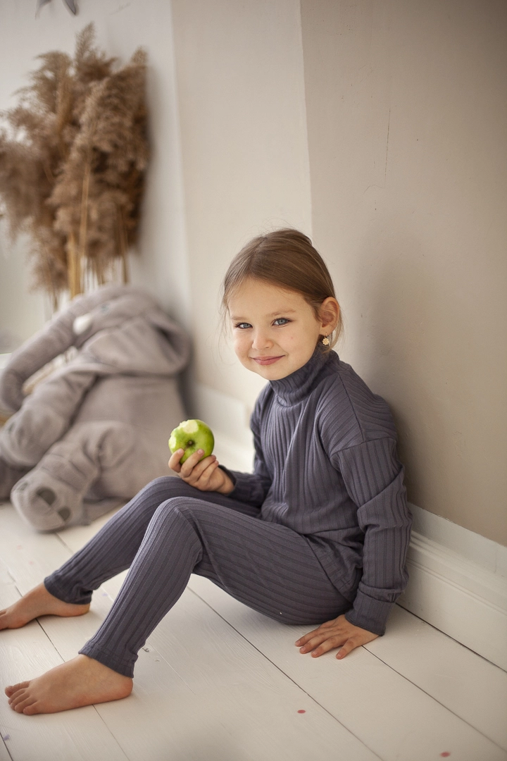 В комплект входят лосины и гольфик с убоной горловиной.