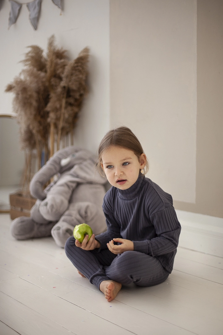 Трикотажный костюмчик на девочку, выполнен из ткани мустанг, не вытягивается в носке, не кашлатится, не линяет.